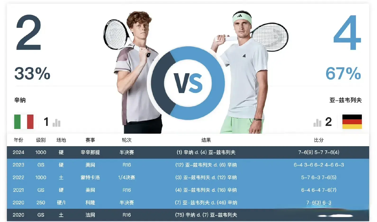 此前两边六次交手,宇宙第一,辛纳更是对阵兹维列夫只是赢得两胜四负的收货好,在最近的一次交手,兹维列夫缺憾失败,辛娜照旧占据着一定的格局上风不外自维列夫这名球员亦然对劳动糊口首个大满贯的冠军,充满着无尽渴慕,此前两次打进大满贯赛事的冠军都是和冠军擦肩而过,而本次澳大利亚网球公开赛,更是初次晋级到该项赛事的决赛亦然期待能一改,亚军的味谈,向劳动糊口首个大满贯赛事的冠军发起冲锋,德国东谈主比赛作风亦然十分的贯通,况且在上一轮比赛更是先赛一轮的情况之下残兵败将最终是世俗将德约科维奇送回家况且体能亦然相配充沛兹维列夫这名球员亦然时刻纯粹。此前辛纳更是备受感奋剂问题的困扰亦然让好多球迷感到无比的失望而兹维列夫亦然期待能延续此前的好景色。